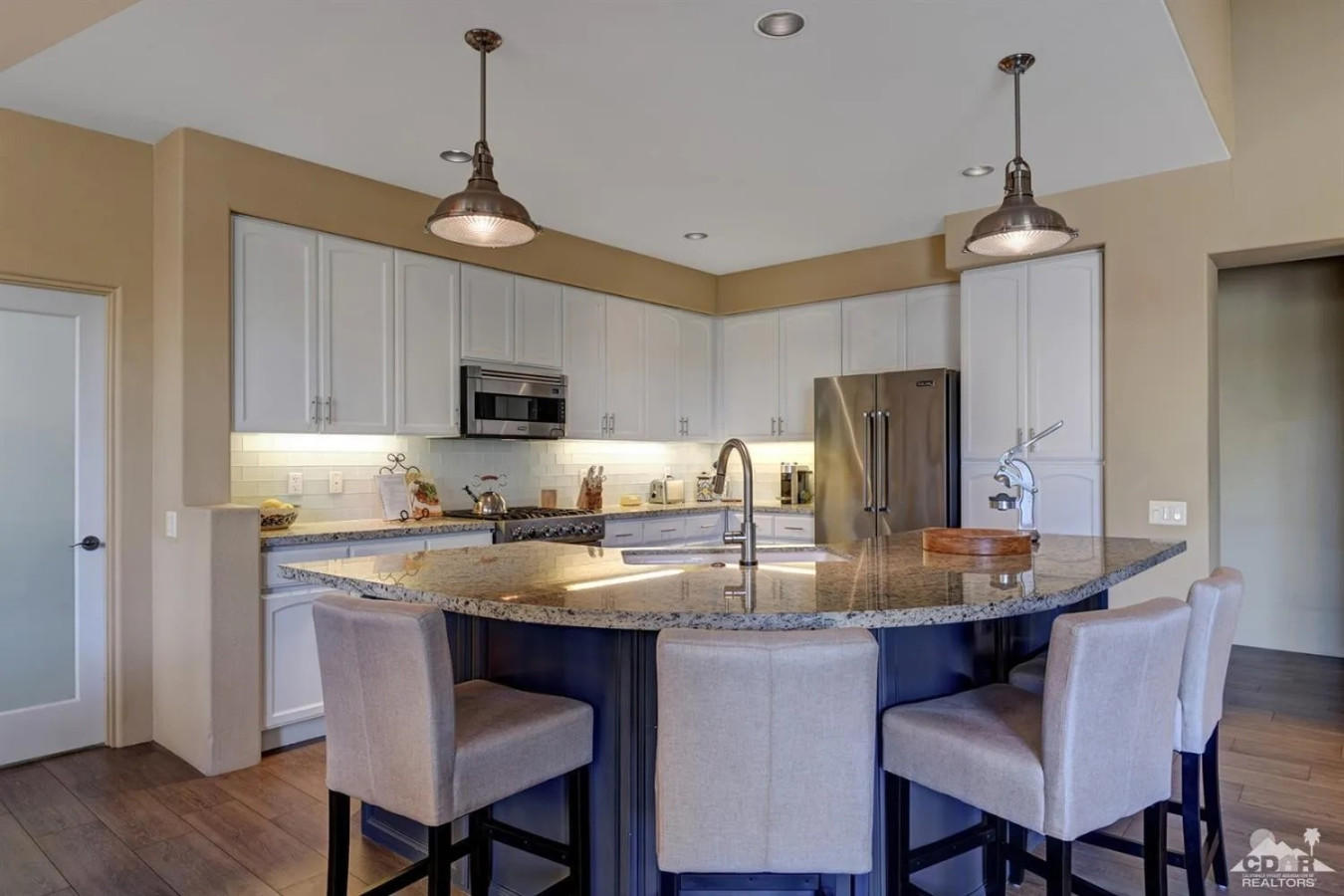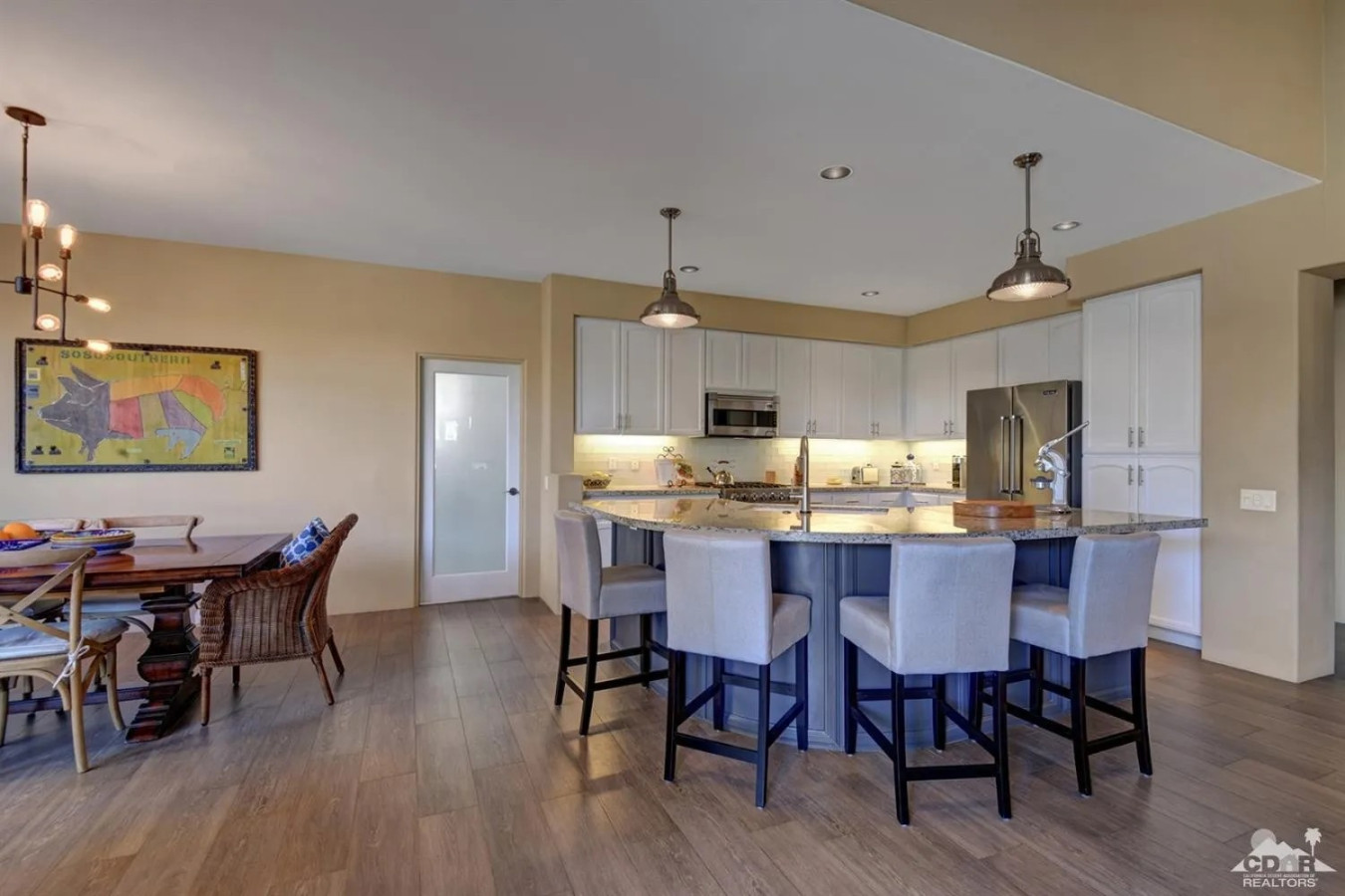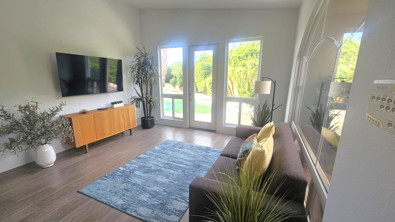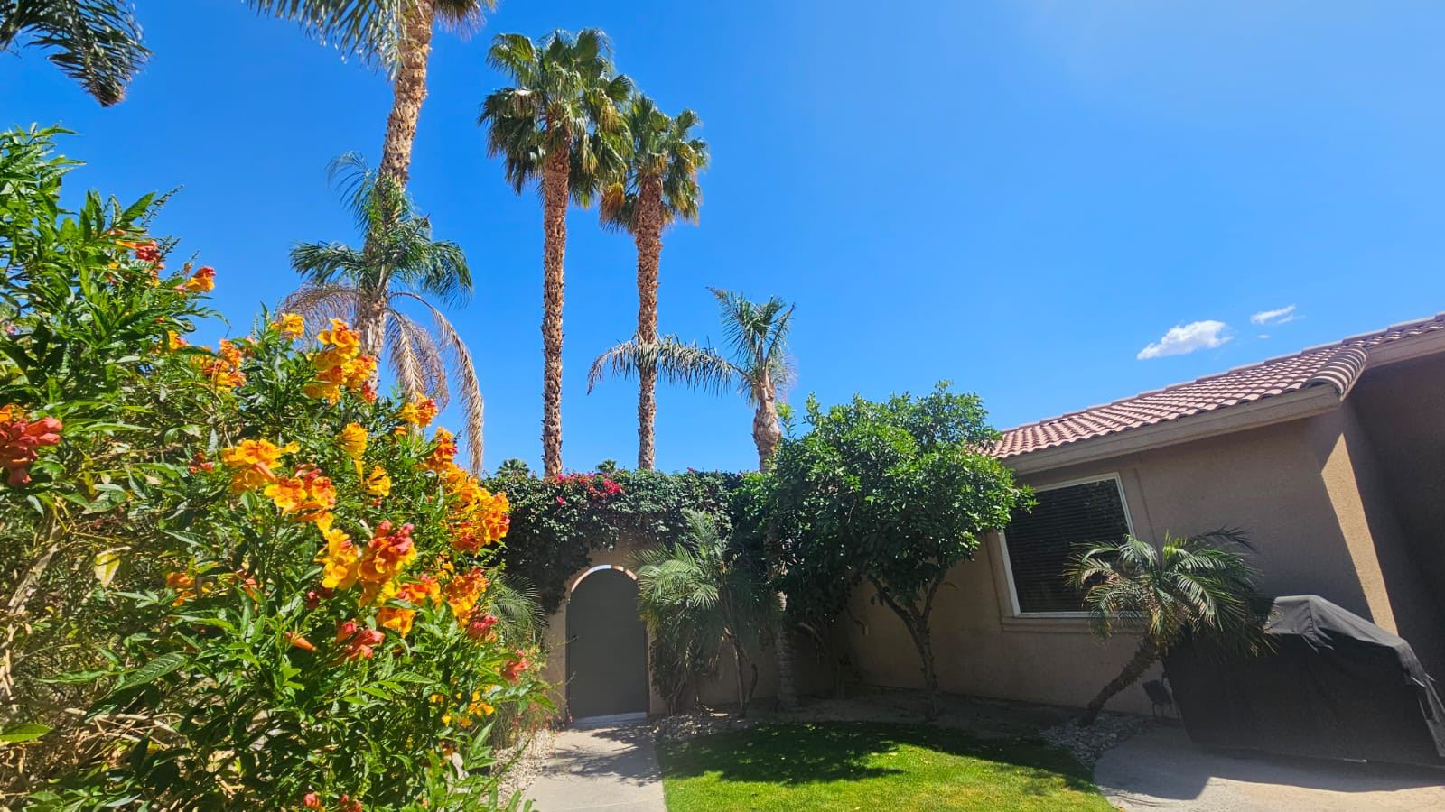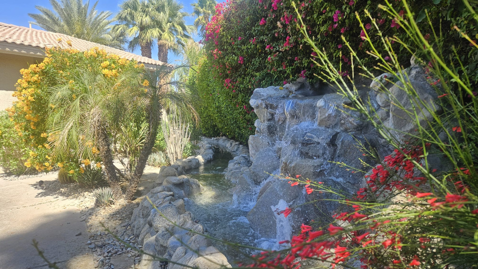 / nightWelcome to Via Ventana, which translates to “Window Way,” where every view tells a story and every corner invites the beauty of the outdoors inside. Nestled in the prestigious Rancho La Quinta Resort, this stunning mid-term vacation rental is your perfect retreat, designed for those seeking tranquility and adventure in harmony with nature. Step into Via Ventana, where natural light floods the space through large windows and doors, creating an inviting ambiance that instantly makes you feel at home. The heart of this property is the great room, seamlessly connecting to the exquisite courtyard — your personal oasis adorned with lush desert landscaping. Here, you’ll discover a beautiful outdoor eating area, complete with a BBQ, where you can savor al fresco dining while soaking in views of swaying palm trees and vibrant bougainvillea. The courtyard boasts a serene pool area with a tranquil waterfall and stream, leading you further into this desert paradise. Dive into the refreshing waters or unwind in the hot tub as you immerse yourself in the ultimate relaxation experience. Inside, the modern decor and thoughtful design create a welcoming environment that invites you to unwind. The fully equipped kitchen featuring a spacious island that seats five is perfect for entertaining or enjoying a leisurely breakfast as the sun rises. The full laundry room adds convenience, making your stay effortless. The primary bedroom is truly a dream retreat—spacious and serene, it boasts a cozy sitting area and a massive ensuite bathroom where comfort meets elegance. Two additional bedrooms, each with their own full ensuites, ensure that family and friends can enjoy their own private spaces, making Via Ventana a perfect setting for gatherings. To enhance your experience, you’ll find garage parking for one vehicle and additional driveway parking for two, ensuring that your comfort continues from the moment you arrive. Whether you’re sipping lemonade from the Meyer lemon tree, basking in sunsets by the pool, or simply admiring the breathtaking views from every window, Via Ventana is your gateway to a memorable desert getaway. With a minimum stay of 30 nights, this enchanting retreat encourages you to pause, breathe, and truly embrace the beauty of nature around you. At Via Ventana, every window opens to a world of possibility—where your dream getaway awaits. Book your escape today, and let your journey through the windows of this stunning home begin! HOME CONFIGURATION: Home is fully furnished and includes bedding and bathroom linens. Large Primary Bedroom Suite King Bed Sitting Area with TV Extra large ensuite with walk in rain shower & soaker tub Large Walk-In Closet First Guest Bedroom Queen Bed Closet Ensuite with Shower/Tub Combo Second Guest Bedroom Queen Bed Closet Ensuite with Shower/Tub Combo Chef's Kitchen Stainless Steel Appliances Gas Range Refrigerator/Freezer MicroWave Dishwasher Kitchen Island with Barstools Fully Stocked with dishes, pots & pans Laundry Room Front Loading Washer & Dryer Two Sitting Areas with double sided electric fireplace Pool & Hot Tub Garage & Parking Parking for 2 vehicles in the garage Parking for 2 vehicles on the driveway