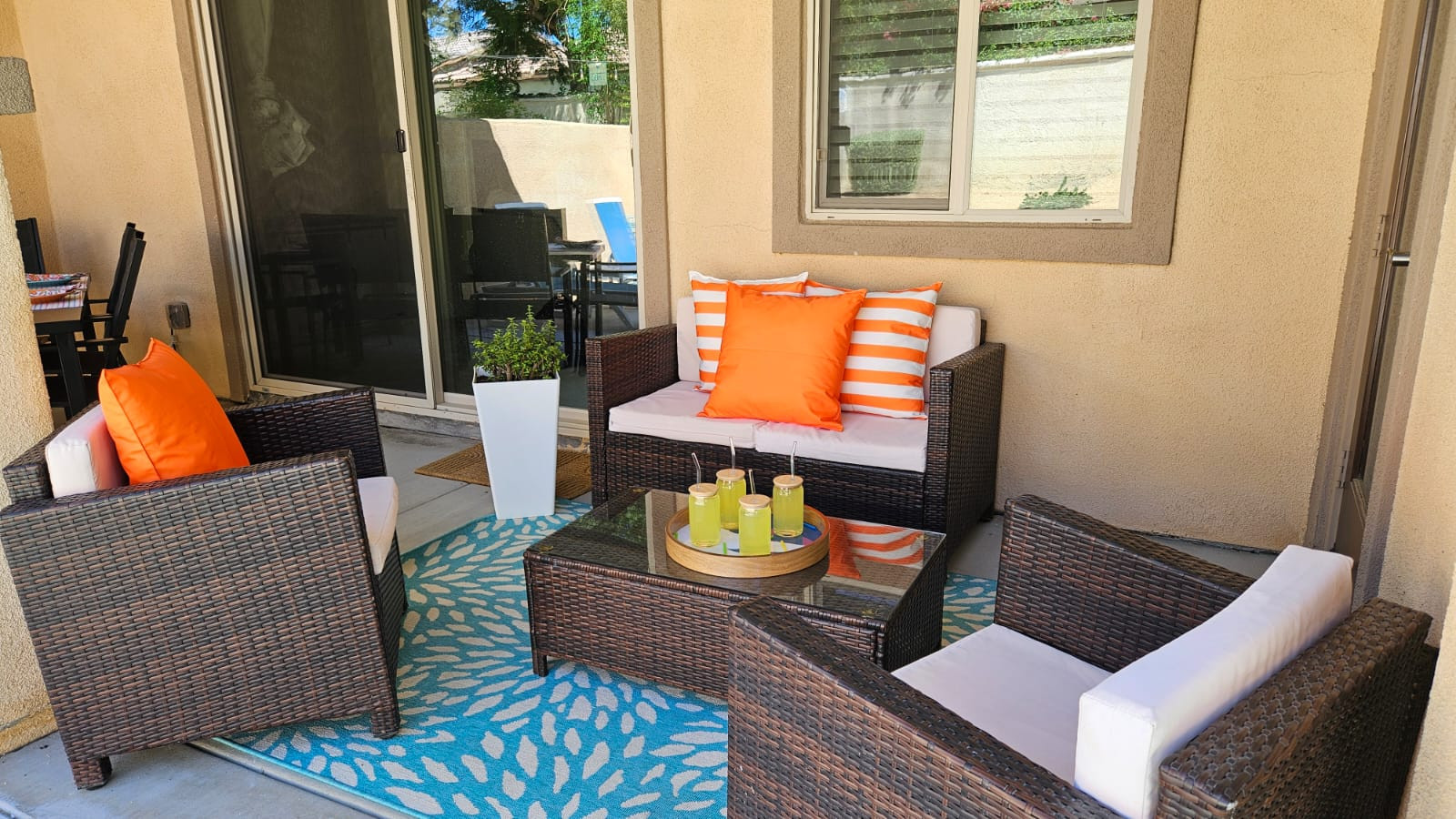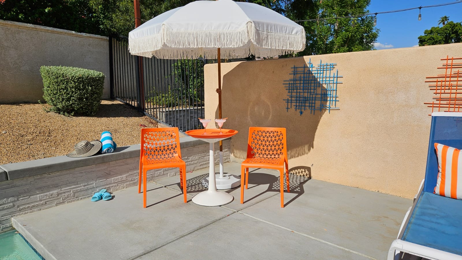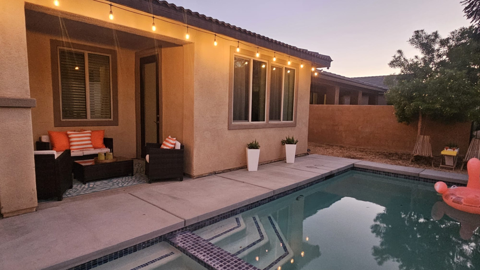 / nightYour Mid-Century Modern Oasis Just Steps from Coachella Please note this is a new listing. We encourage you to check out our host reviews on our other properties — they are amazing and reflect our genuine care and commitment to every guest. Welcome to Desert Dip & Splash, your vibrant retreat nestled in the heart of Indian Palms, Indio, CA — where the desert sun meets cool, refreshing waters and timeless style. This newly built 3-bedroom, 2.5-bath home invites you to dive into a world of relaxation, fun, and unforgettable memories. Imagine This: You wake up to the soft desert light filtering through sleek, mid-century modern windows. The air is warm but inviting, and the promise of a refreshing dip beckons. Step outside onto your private patio, where pops of orange and blue brighten the space, and vintage dishes set the scene for a leisurely breakfast under the sun. The intimate, sparkling pool and bubbling jacuzzi hot tub offer the perfect escape from the desert heat — whether you’re cooling off after a day of festival fun or soaking under the stars with a glass of wine in hand. The Space: -3 Bedrooms | Sleeps 8 -Master bedroom with a plush king bed — your personal sanctuary. -Guest bedroom with a king bed, perfect for couples or solo travelers. -Third bedroom with a queen bed plus a set of cozy bunk beds, ideal for families or groups. -2.5 Bathrooms — plenty of space for everyone to refresh and recharge. -Chef’s Kitchen — stainless steel appliances and an oversized island make cooking a joy, whether you’re whipping up a quick breakfast or hosting a sunset dinner party. -Mid-Century Modern Vibes — stylish, clean lines meet vibrant colors and vintage touches both inside and out, creating a playful yet sophisticated atmosphere. Location Highlights: -Walk to Coachella & Stagecoach Music Festivals — no need to worry about parking or traffic; immerse yourself in the music and culture just minutes from your door. -10 minutes to Indian Wells Tennis Gardens — catch world-class tennis matches or enjoy the stunning desert scenery. -Abundant golf courses just minutes away — tee off at some of the best courses the Coachella Valley has to offer. -1 hour from Joshua Tree National Park — plan a day trip to explore iconic desert landscapes, hiking trails, and starry night skies. Perfect for Any Stay: Whether you’re here for a weekend getaway, a festival adventure, or an extended desert escape, Desert Dip & Splash is perfectly suited for both short-term visits and monthly stays. Enjoy the flexibility to relax, recharge, and truly make this mid-century modern oasis your home away from home. Who This Property Caters To: Couples: Escape to a romantic desert retreat where you can unwind by the pool, soak in the jacuzzi, and enjoy cozy nights in the stylish master suite. The peaceful setting and vibrant ambiance make it perfect for reconnecting and making memories together. Small Families: With three bedrooms, including a room with bunk beds, and plenty of space indoors and out, this home is ideal for families looking to enjoy quality time poolside, explore nearby attractions, and create lasting moments in a safe, comfortable environment. Golf Groups: Located just minutes from an abundance of premier golf courses, this property offers the perfect home base for golf enthusiasts. Relax after a day on the links in the refreshing pool or jacuzzi, and gather around the oversized kitchen island to share stories and plan your next round. Why You’ll Love Staying Here: At Desert Dip & Splash, every detail is designed to help you unwind and connect — whether you’re splashing in the pool, soaking in the jacuzzi, or sharing stories around the outdoor table set with vibrant vintage dishes. It’s more than a vacation rental; it’s your desert oasis, your festival basecamp, your mid-century modern dream. So pack your bags, bring your favorite playlist, and get ready to dip, splash, and soak up the best of Indio living. As your hosts, we have extensive experience hosting and love to ensure our guests have a memorable stay. Whether it's providing recommendations for local attractions or assisting with any needs during your visit, we are dedicated to making your stay at "Desert Dip & Splash" unforgettable. At Prestige Point Vacation Homes, our passion is creating the perfect space for families and friends to connect and bond. Whether it’s family getting together, golf buddies on a getaway, or a girls' retreat, we’re here to provide an unforgettable experience filled with warmth and joy. Can’t wait to welcome you! Please note by booking this home you acknowledge the potential risks associated with the use of the house facilities. By confirming your stay at "Desert Dip & Splash," you agree to assume all responsibility for yourself and your party. Full access to the entire property. Notes: We welcome requests for pool heating at $50.00 per day. Spa Only at $25.00 per day. Book your stay at Desert Dip & Splash today — your poolside paradise awaits!