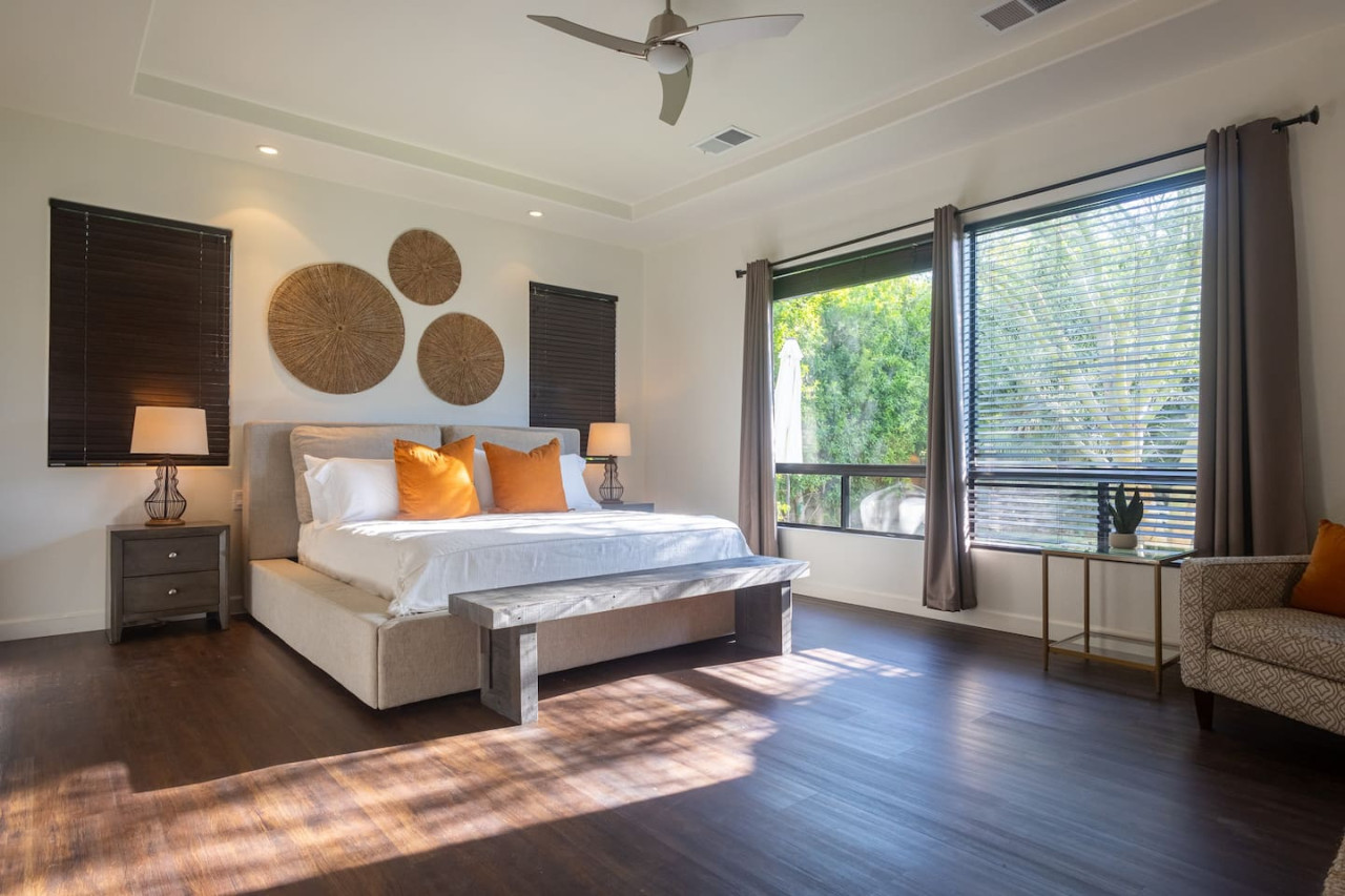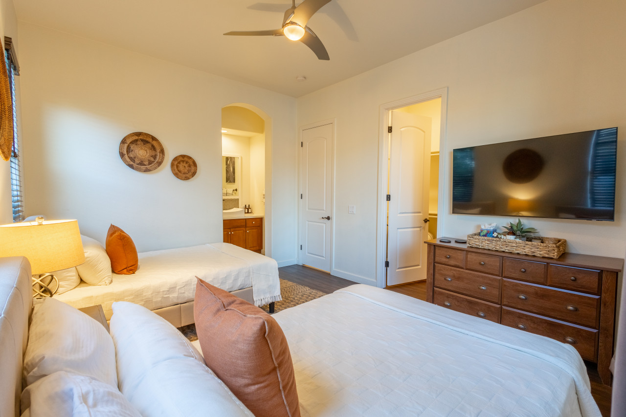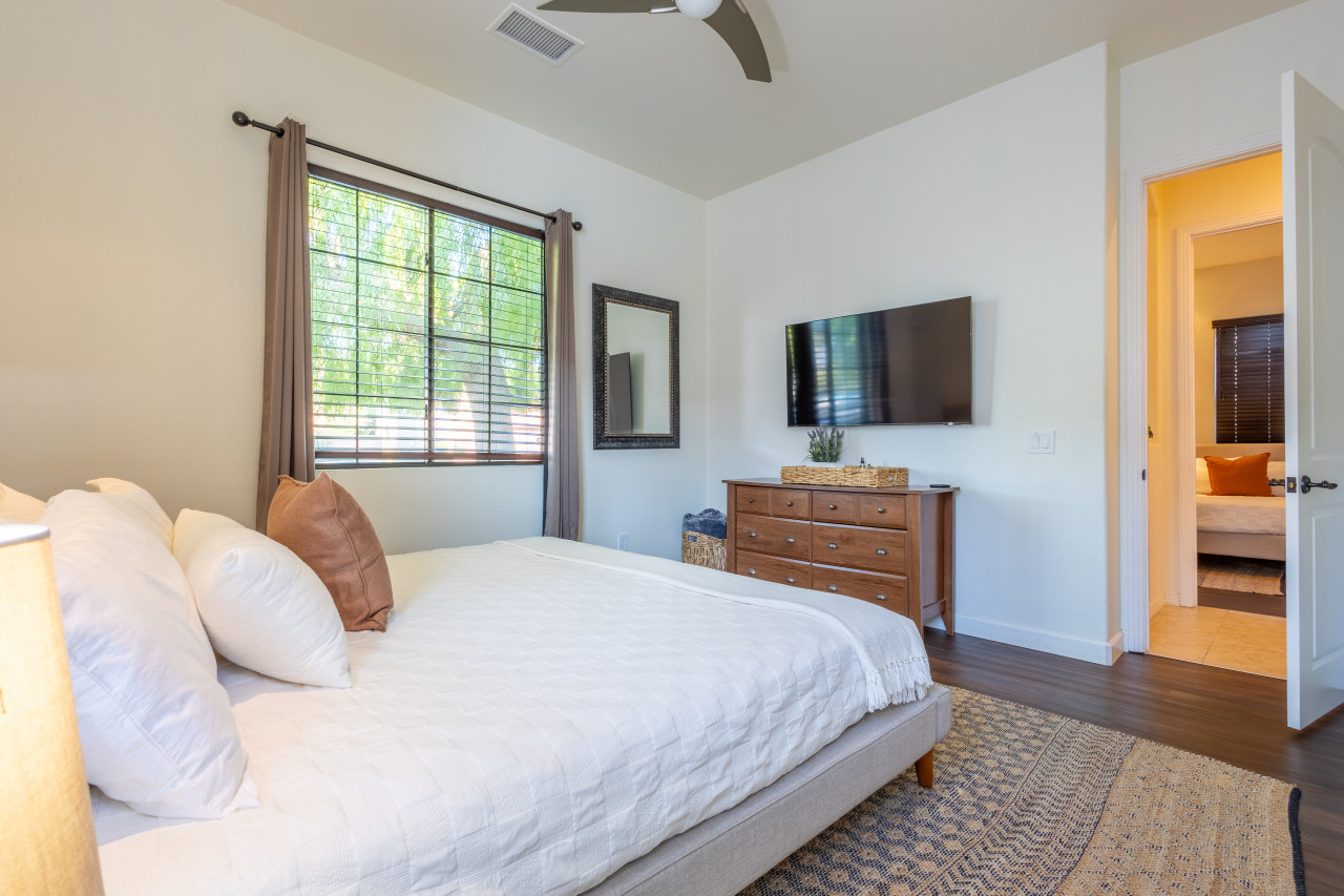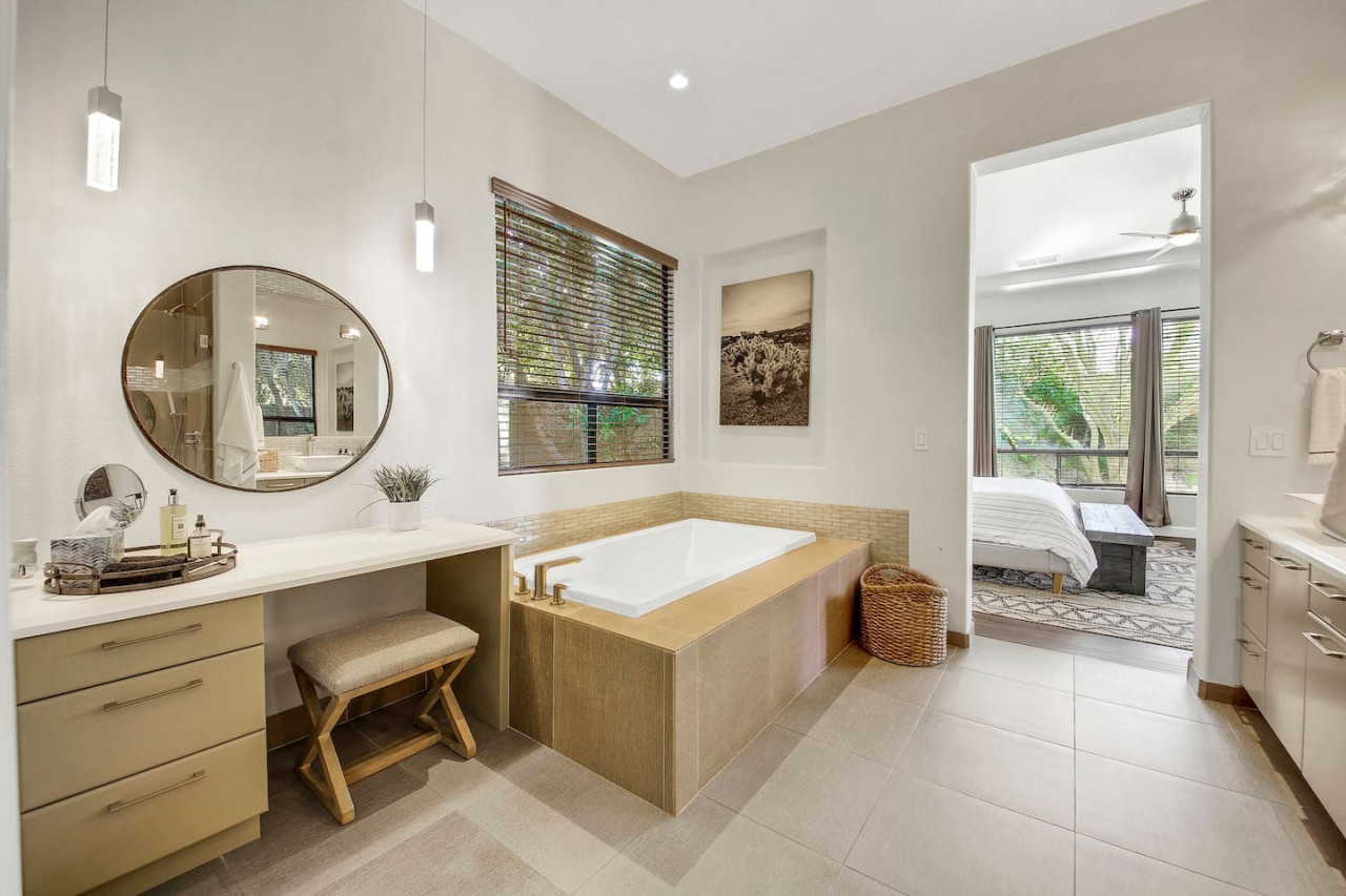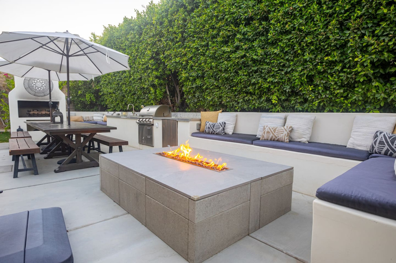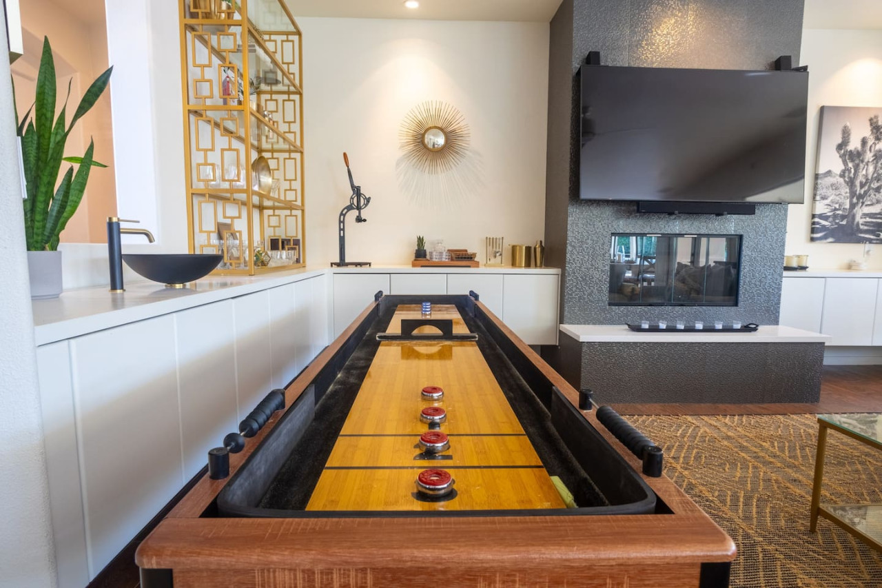 / nightWe are thrilled to announce that our stunning vacation property will be featured on the Emmy-Award winning show, "Staycation!" This is your chance to experience the luxurious charm and unique amenities that have captured the attention of the TV world. Escape to "Paraiso Del Sol," where paradise meets the sun. Enjoy desert-themed art, a spacious kitchen, and numerous amenities including a large pool, hot tub, outdoor kitchen with fireplace and firepit, putting green, and swaying palm trees. This gated Montage community home offers parking for 8 cars and is ideally located near Indian Wells Tennis Gardens, Polo Grounds, Coachella, and Stagecoach. Perfect for special celebrations, we offer exclusive Bachelorette and Birthday Decor Rentals with setup to make your gathering extra memorable. Choose from poolside patio decor, a mimosa bar, or a bride-to-be bedroom decorating package—or combine all three for the ultimate festive experience. Please inquire about these add-ons when booking to customize your celebration. Relax in the hot tub, soak up the sun by the pool, cook in the fully equipped indoor or outdoor kitchens, or gather around the firepit under the stars. Experience the luxury and fun of the ultimate desert getaway at "Paraiso Del Sol." Inside, the five-bedroom home features stunning desert-inspired artwork and modern comforts. The great room boasts a 75" Samsung smart TV and high-speed 1-Gigabyte Wi-Fi for seamless entertainment. Each bedroom has its own TV for convenience. Sleeping arrangements include: - Master bedroom with king bed and private ensuite - Second guest bedroom with king bed and private ensuite - Third guest bedroom with king bed and shared bathroom - Fourth guest bedroom with two double beds and private ensuite - Fifth guest bedroom with two sets of bunk beds (4 beds total) and shared bathroom - Additional powder room Step outside to your private, fully fenced backyard oasis complete with a sparkling pool, hot tub, and custom outdoor kitchen featuring a cozy fireplace and firepit. Nearby attractions include the Empire Polo Fields (under 5 minutes away), Old Town La Quinta (5-7 minutes), and Indian Wells Tennis Garden (10 minutes). For shopping and dining, head to Palm Desert/El Paseo (15-20 minutes). Joshua Tree National Park is an easy hour’s drive for breathtaking landscapes. With parking for up to 8 cars plus an EV charger, this desert haven provides everything for an unforgettable stay. As your hosts with extensive experience, we’re dedicated to making your visit exceptional—from local tips to personalized support. At Prestige Point Vacation Homes, we create spaces for families, friends, golf buddies, and girls’ retreats to connect and celebrate in style. Please note: By booking, you acknowledge the potential risks related to using house facilities and agree to assume responsibility for yourself and your party. Book your stay today and treat yourself to the ultimate desert retreat at "Paraiso Del Sol." Don’t forget to ask about our exclusive Bachelorette and Birthday decor packages to elevate your special occasion. Full access to the entire property. Notes: - Pool heating available at $75.00 per day. - Spa only available at $25.00 per day.