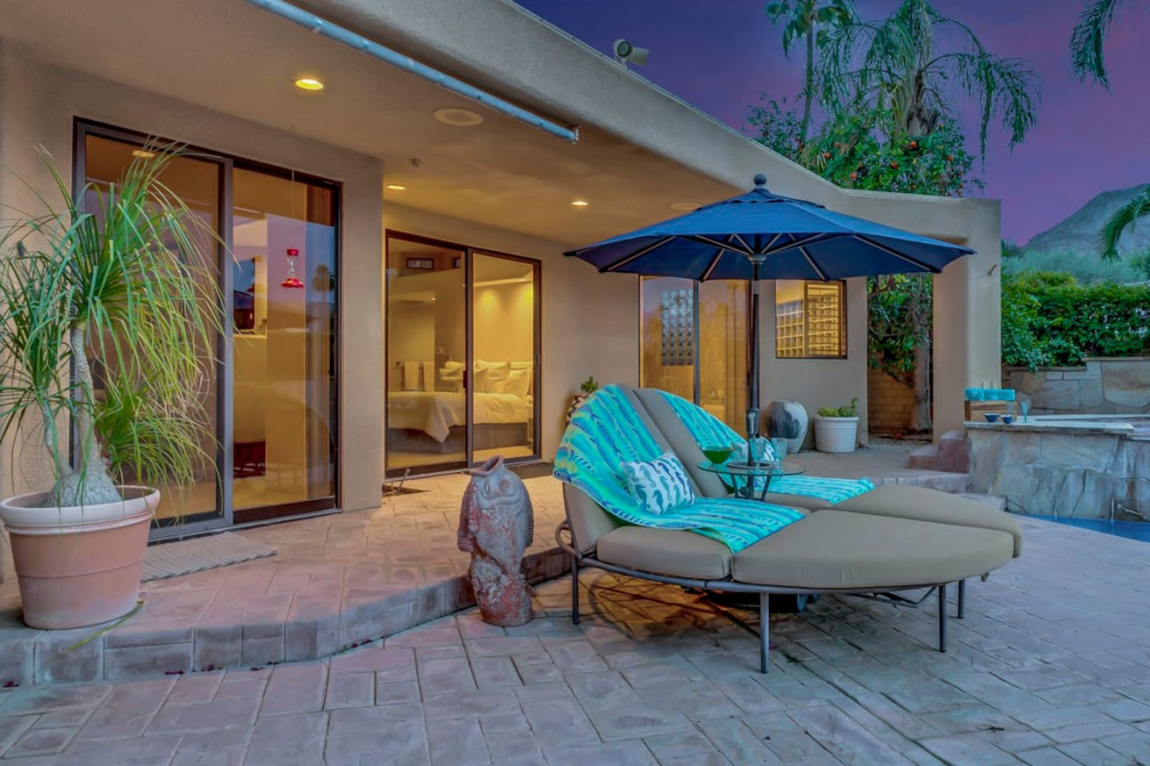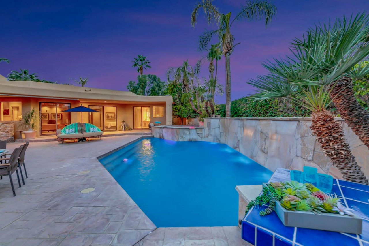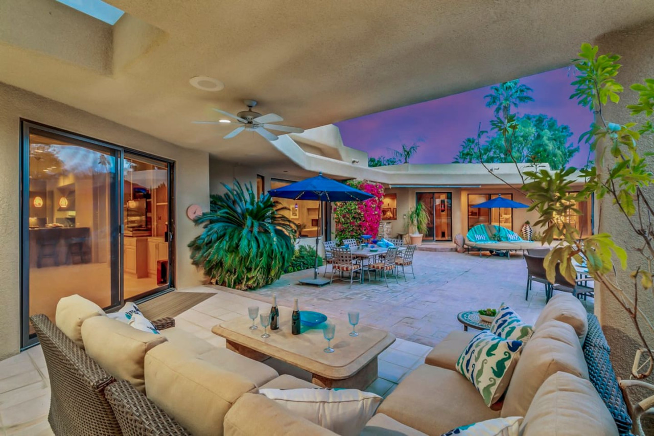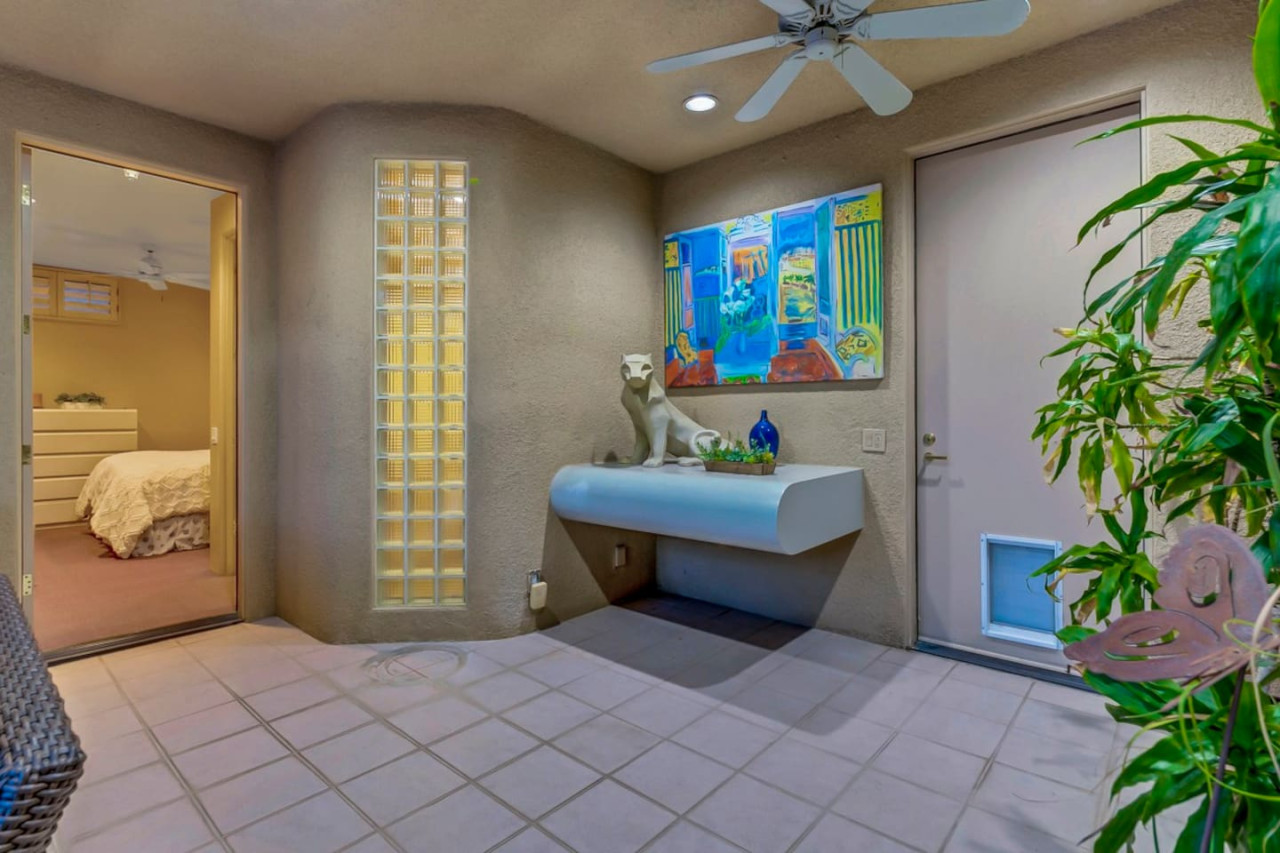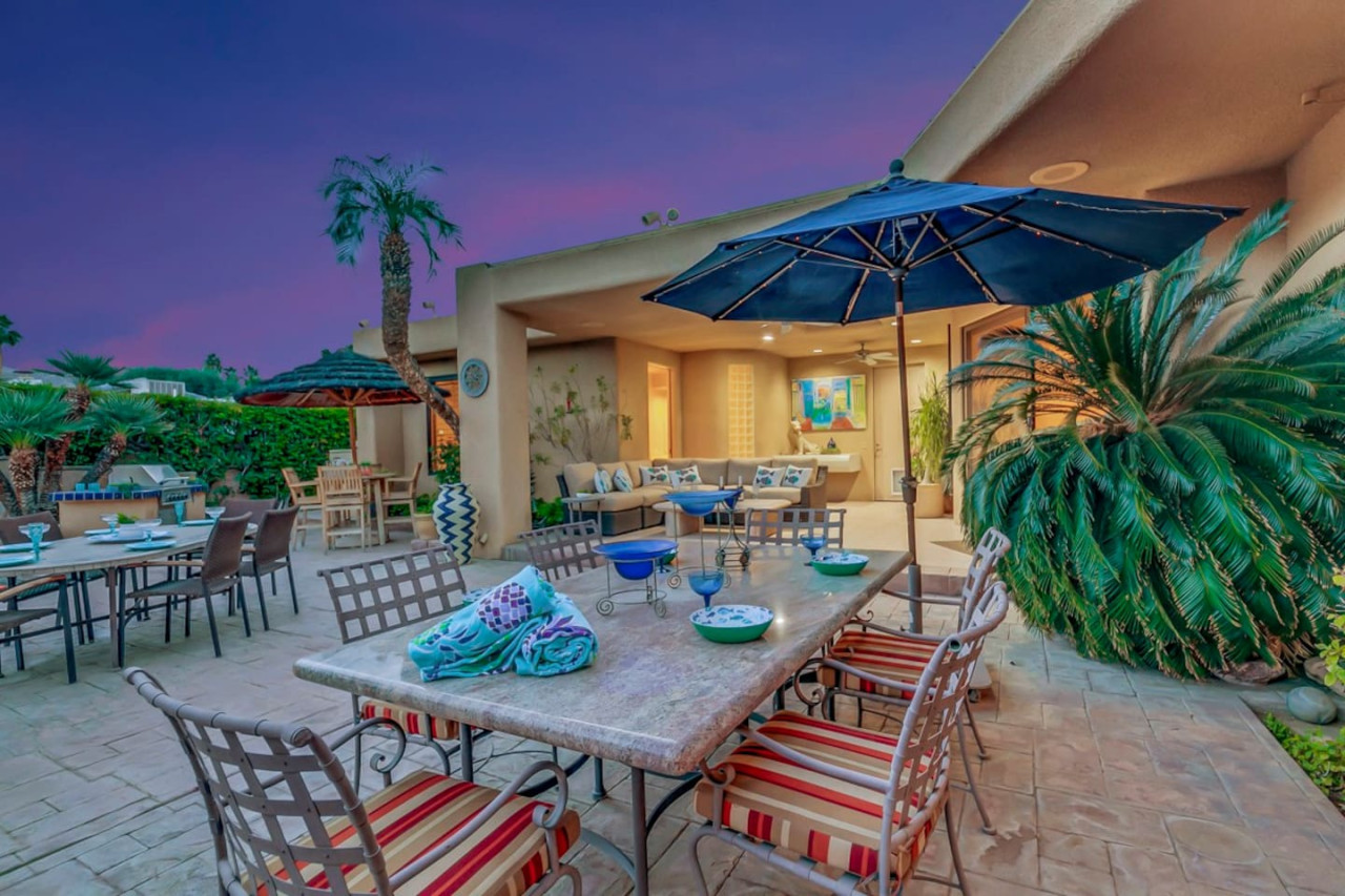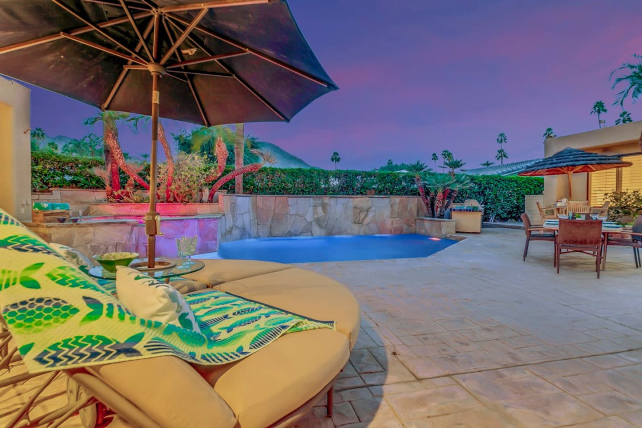 / nightExperience luxurious living in this stunning 4-BD, 4.5-BA home, w/5,007 sq ft of living space on a 16,117 sq ft lot, featuring a tranquil pool & spa area, complete w/breathtaking mountain views. Tile floors throughout. Two fireplaces create a cozy setting. Gourmet kitchen, a chef's dream w/skylight & premium Viking appliances. The property includes a 3-car garage & dedicated golf cart space. No neighbors on either side, so to enjoy the peaceful tranquility of your surroundings.