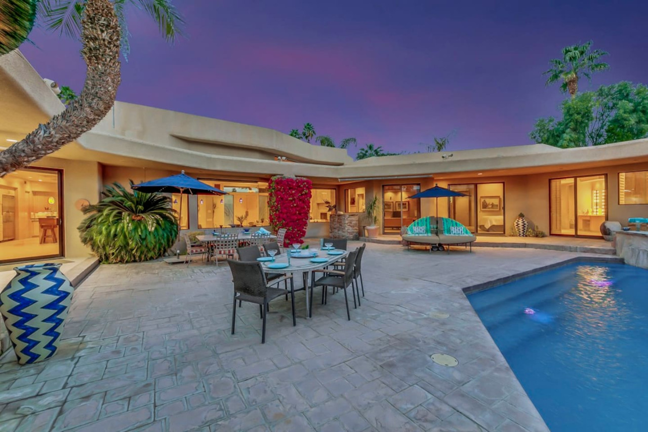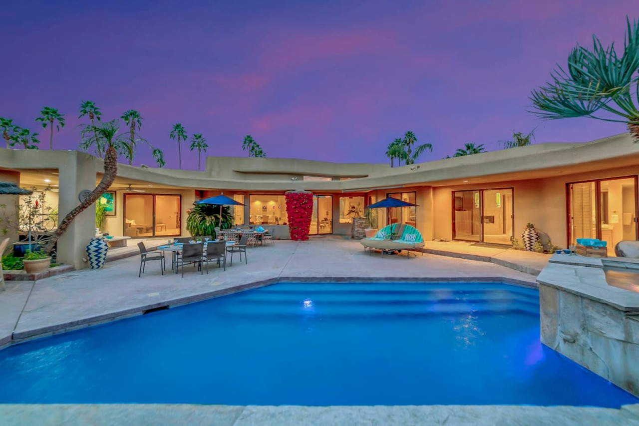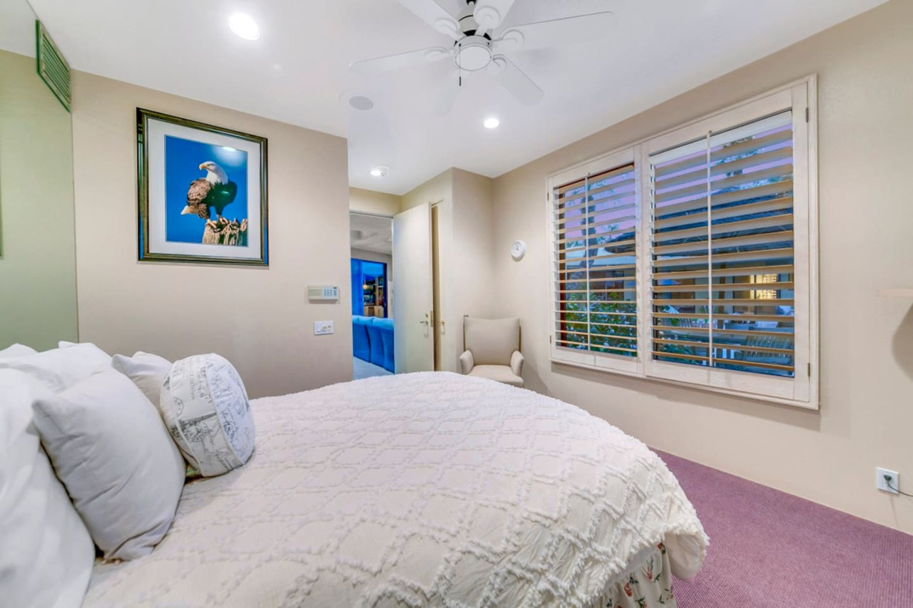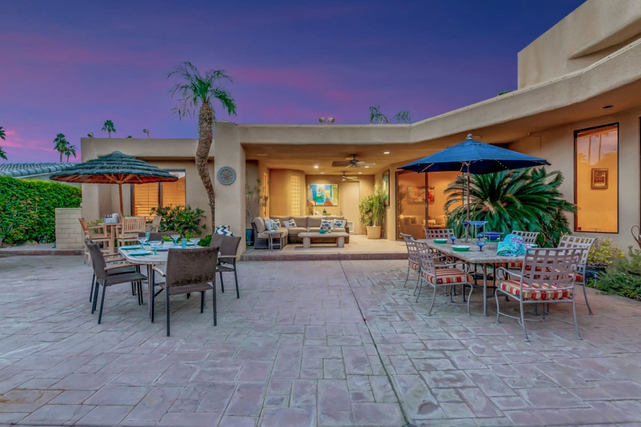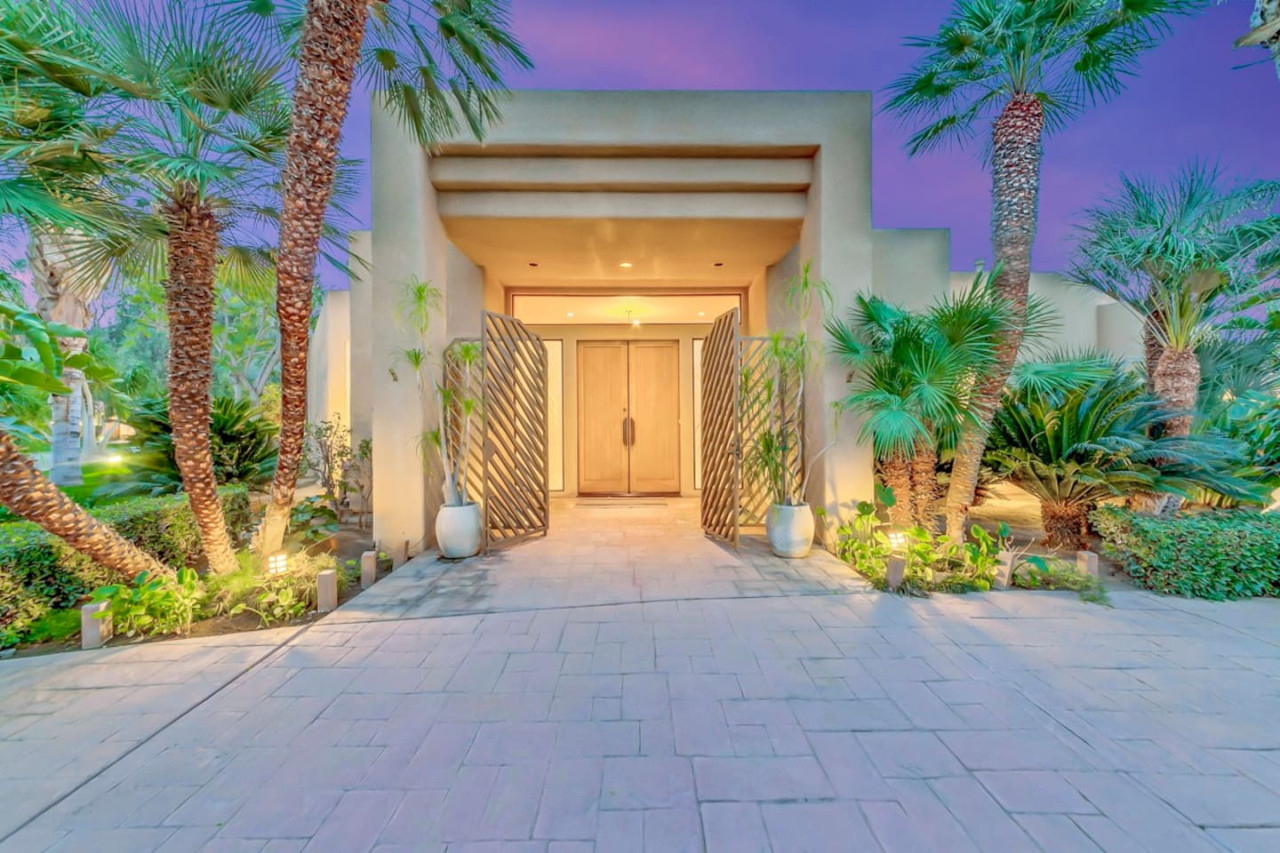 / nightExperience luxurious living in this stunning 4-BD, 4.5-BA home, w/5,007 sq ft of living space on a 16,117 sq ft lot, featuring a tranquil pool & spa area, complete w/breathtaking mountain views. Tile floors throughout. Two fireplaces create a cozy setting. Gourmet kitchen, a chef's dream w/skylight & premium Viking appliances. The property includes a 3-car garage & dedicated golf cart space. No neighbors on either side, so to enjoy the peaceful tranquility of your surroundings.