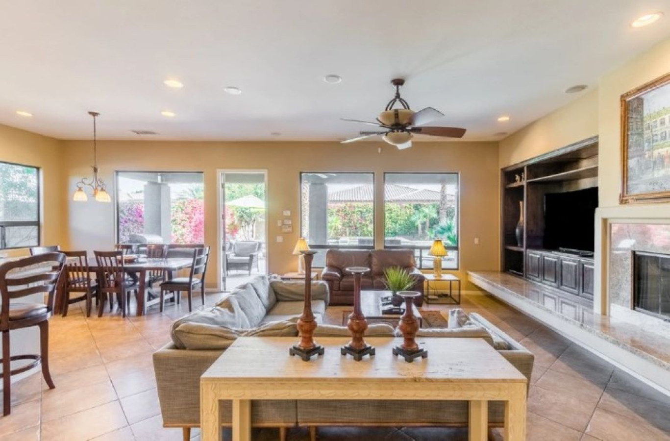/ nightExperience Italian Elegance in the Heart of the Desert – Just Minutes from Coachella & Stagecoach! Please note this is a new listing. We encourage you to check out our host reviews on our other properties — they are amazing and reflect our genuine care and commitment to every guest. Welcome to The Tuscan Desert Escape, a breathtaking vacation home where the rustic charm of Tuscany meets the serene beauty of the desert — managed by Karen and Sib of Prestige Point Vacation Homes, your trusted partner for premium stays in the Coachella Valley. This exquisite five-bedroom retreat is designed to immerse you in the warmth and elegance of modern Tuscan style, offering a unique blend of comfort, sophistication, and desert tranquility. From the moment you arrive, Prestige Point Vacation Homes ensures every detail is taken care of so you can focus on making unforgettable memories. About The Tuscan Desert Escape Step inside and discover a spacious, light-filled home featuring five beautifully appointed bedrooms, including a lavish master suite with a private ensuite bath. The home’s warm, inviting finishes and authentic Tuscan-inspired décor create an atmosphere of refined relaxation. Start your mornings at the dedicated coffee bar or cozy breakfast nook, where you’ll find a waffle maker complete with waffle ingredients, syrup, and a selection of breakfast bars—perfect for a delicious and easy breakfast. Savor freshly brewed coffee as you prepare a meal in the fully equipped chef’s kitchen, stocked with Italian pasta and all the essentials you need. The Italian-style dining area invites you to gather with family and friends for meals that feel like a celebration. Outside, your private desert oasis awaits. Lounge by the sparkling pool and spa, surrounded by native desert plants and endless sunshine. When evening falls, enjoy grilling dinner on the outdoor barbecue, then relax under the stars in the spacious seating area — the perfect setting for quiet conversations or lively gatherings. Why Choose The Tuscan Desert Escape with Prestige Point Vacation Homes? Booking this property with Karen and Sib means you’re not just renting a house; you’re gaining access to a dedicated team committed to making your stay flawless and memorable. As your hosts, we have extensive experience hosting and love to ensure our guests have a memorable stay. Whether it's providing recommendations for local attractions or assisting with any needs during your visit, we are dedicated to making your stay at The Tuscan Desert Escape unforgettable. Here’s what sets us apart: Impeccably Maintained Property: We ensure The Tuscan Desert Escape is spotless, fully stocked, and guest-ready for your arrival. Personalized Guest Support: Whether you need local recommendations, assistance with amenities, or help planning your activities, our team is available to assist. Flexible Comfort & Convenience Options: Pool or spa heating, early or late check-in/out, and other specialized requests can be easily arranged through your personalized guest portal to tailor your experience. Local Expertise: Benefit from our deep knowledge of Coachella Valley’s top attractions, dining, and entertainment. Availability: We’re here whenever you need us, providing peace of mind throughout your stay. Property Highlights Five spacious bedrooms, including a luxurious master suite with king bed and private ensuite Three additional bedrooms with king beds, plus a fifth bedroom with two double beds Two full bathrooms plus ensuite master bath, all with modern fixtures and elegant finishes Fully equipped chef’s kitchen with Italian pasta and essentials Dedicated coffee bar and cozy breakfast nook with waffle maker, ingredients, syrup, and breakfast bars Italian-style dining table perfect for family meals and celebrations Private pool and spa with optional heating for year-round enjoyment Outdoor grill and ample seating for dining and entertaining under the stars Ideal Location Located just minutes from Coachella & Stagecoach Music Festivals, Indian Wells Tennis Gardens, and premier golf courses. Situated in the heart of the Coachella Valley, The Tuscan Desert Escape offers easy access to iconic attractions like the Empire Polo Club, Joshua Tree National Park, El Paseo shopping district, and charming Old Town La Quinta. Whether you’re here for world-class music festivals or a relaxing desert retreat, this home provides the perfect base. As your hosts, we have extensive experience hosting and love to ensure our guests have a memorable stay. Whether it's providing recommendations for local attractions or assisting with any needs during your visit, we are dedicated to making your stay at "Tuscan Desert Escape" unforgettable. At Prestige Point Vacation Homes, our passion is creating the perfect space for families and friends to connect and bond. Whether it’s family getting together, golf buddies on a getaway, or a girls' retreat, we’re here to provide an unforgettable experience filled with warmth and joy. Can’t wait to welcome you! Reserve your stay at The Tuscan Desert Escape today and enjoy the perfect blend of Tuscan elegance and desert serenity — with the peace of mind that comes from booking with Karen and Sib through Prestige Point Vacation Homes, your dedicated property management team. Booking & Policies Please note: By booking, you acknowledge the potential risks associated with the use of the home’s facilities and agree to assume all responsibility for yourself and your party. Additional Amenities: Pool heating available at $75/day Spa heating available at $25/day Early or late check in/out upon availability $75 Mid stay cleans Prestige Point Vacation Homes — Elevating your Coachella Valley experience through exceptional properties and personalized service. We look forward to hosting you!